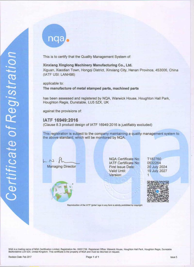 公司簡介新鄉(xiāng)市興隆機(jī)械制造有限公司成立于2004年,是一家專門生產(chǎn)濾清器配件、電池配件、冰箱配件等金屬沖壓件的機(jī)加工企業(yè)。公司位于新鄉(xiāng)市紅旗區(qū)小店鎮(zhèn),緊鄰京珠高速、107國道,占地23000m2,于2004年通過了質(zhì)量管理體系認(rèn)證。